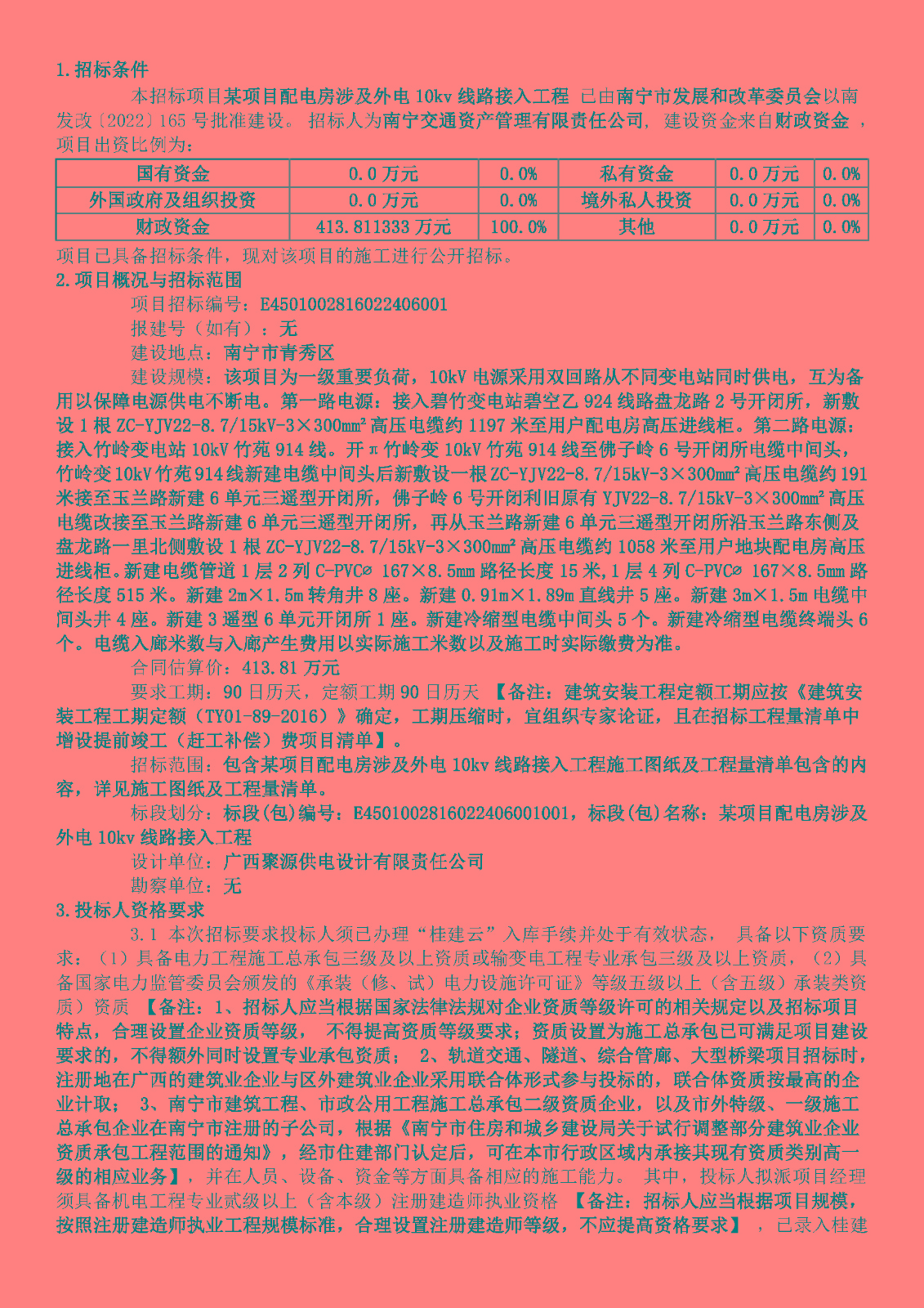 某項目配電房涉及外電10kv線路接入工程施工招標公告