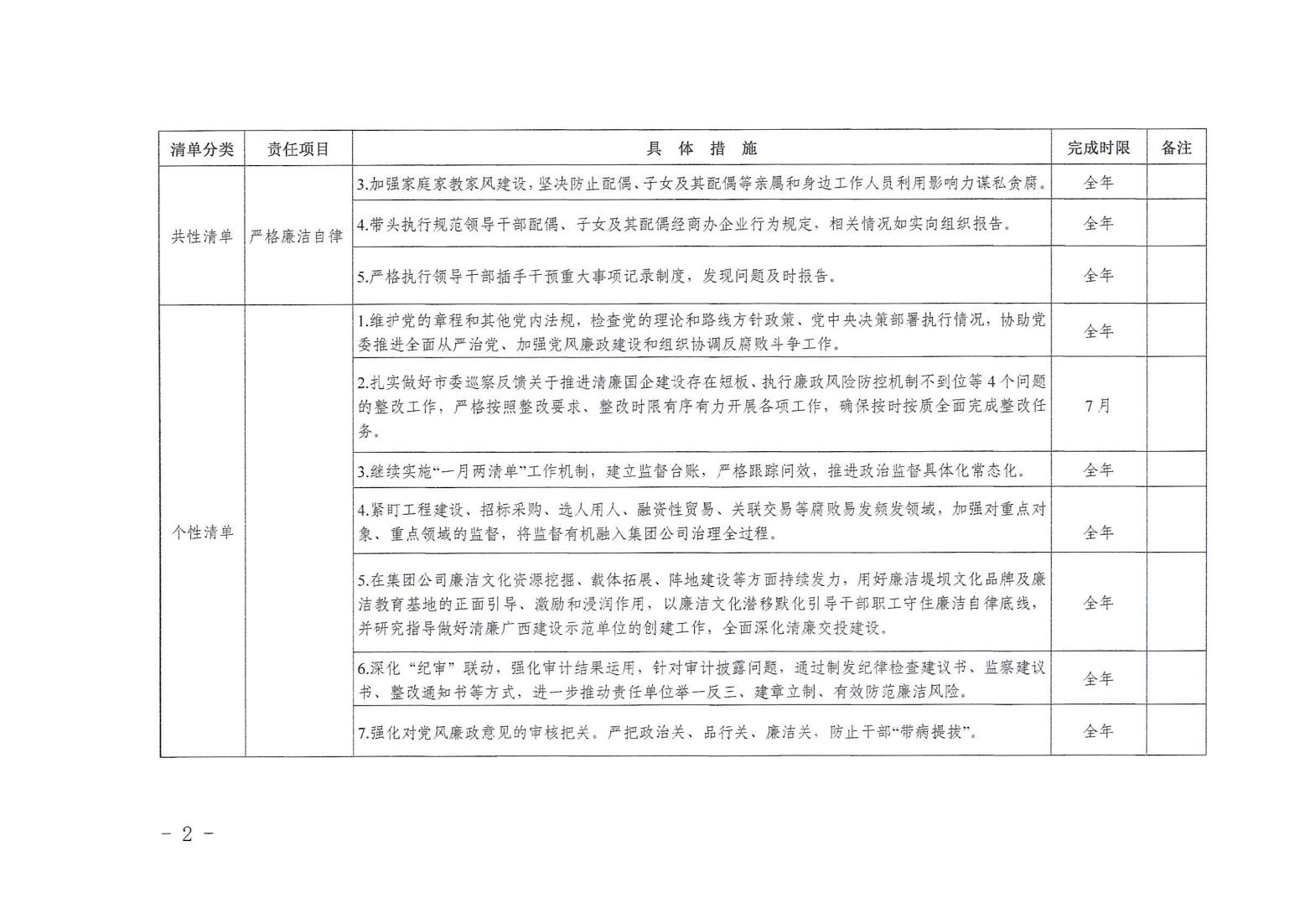 領導班子其他成員2024年度黨風廉政建設“一崗雙責”清單(二)