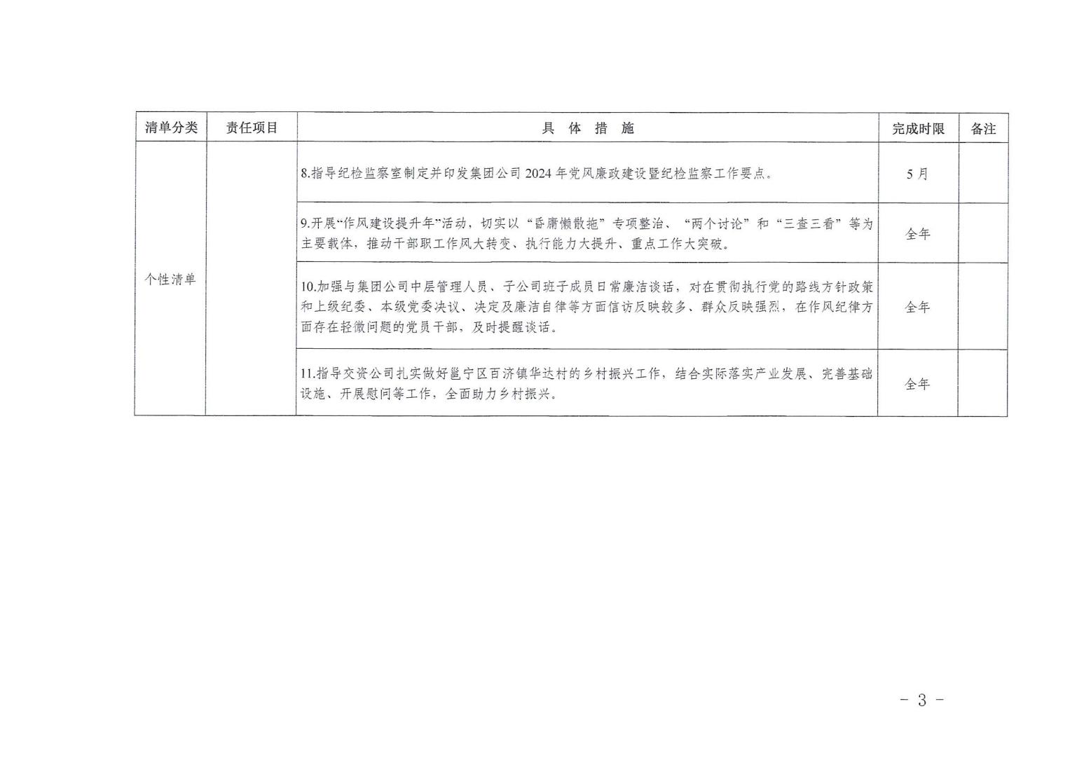 領導班子其他成員2024年度黨風廉政建設“一崗雙責”清單(三)