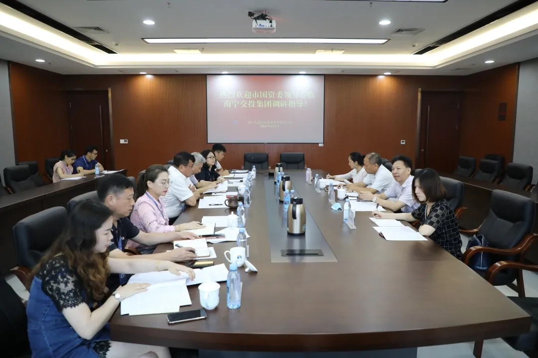 6月2日,市國資委黨委委員、副主任喻萬才率隊到南寧交投集團(tuán)調(diào)研指導(dǎo)工作,集團(tuán)公司黨委書記、董事長、總經(jīng)理楊漣,集團(tuán)公司董事會辦公室、辦公室、人力資源部、企業(yè)管理部、財務(wù)管理部相關(guān)負(fù)責(zé)人參加調(diào)研座談會。