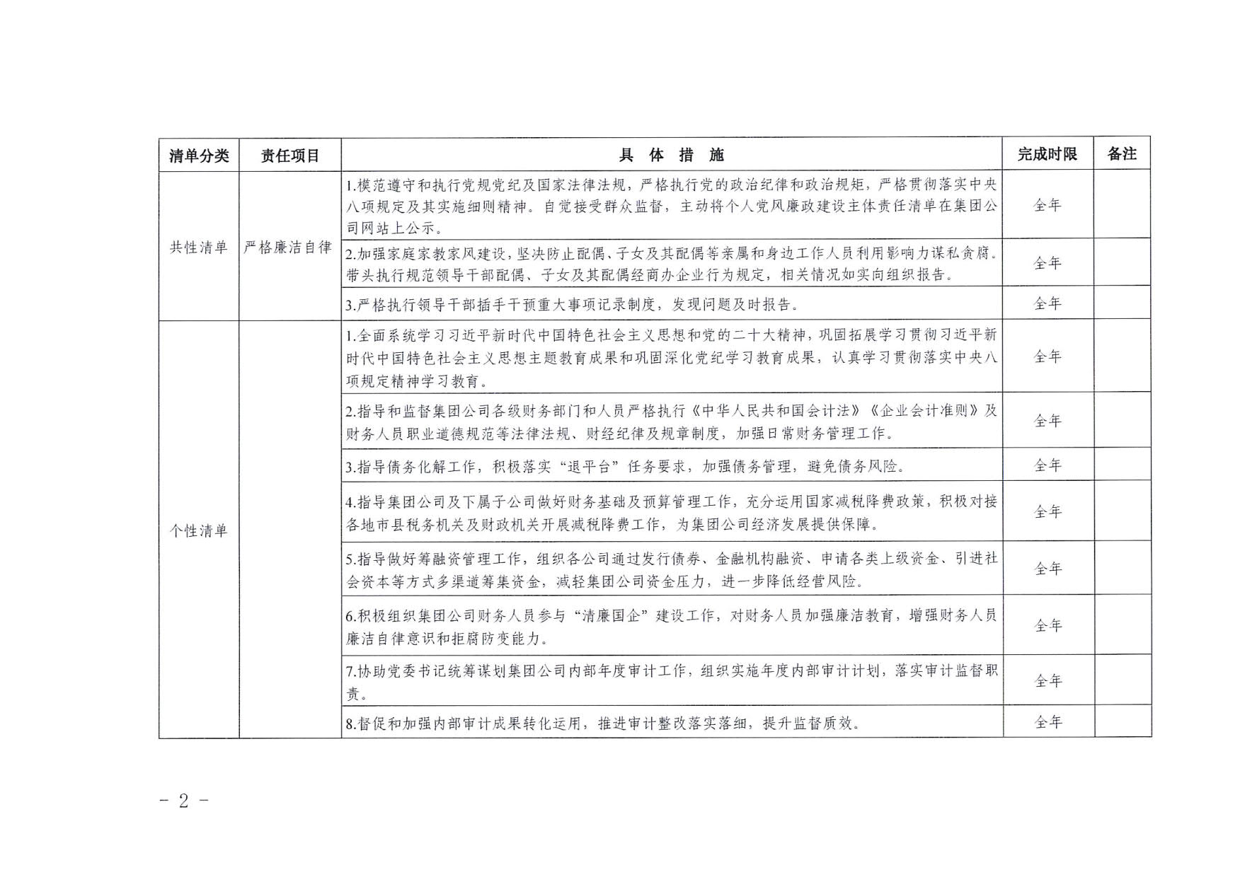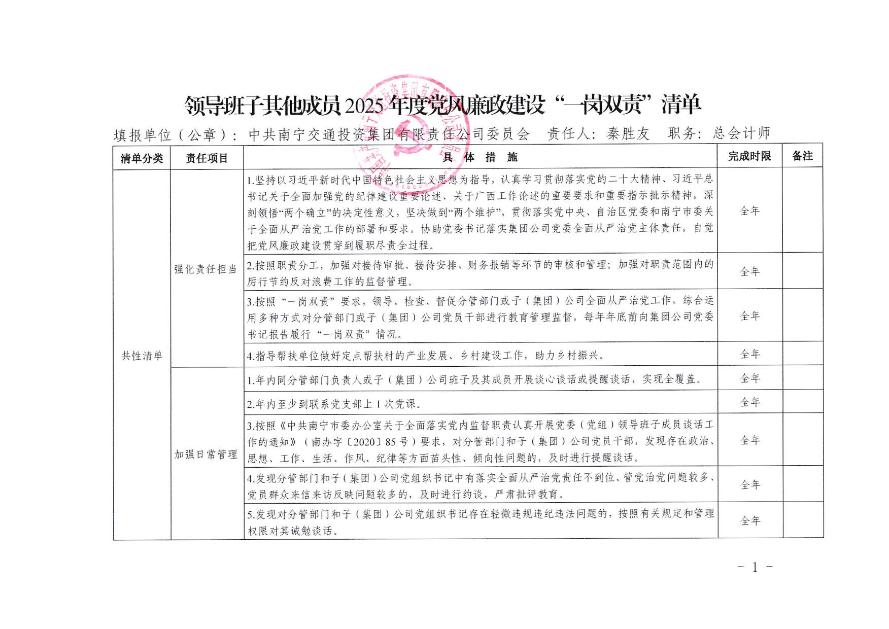 南寧交投集團領(lǐng)導(dǎo)班子其他成員2025年度黨風(fēng)廉政建設(shè)“一崗雙責(zé)”清單(六)