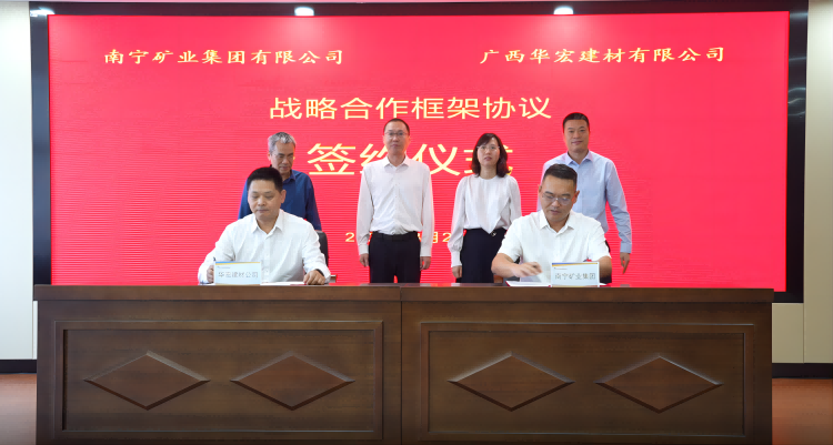 南寧礦業(yè)集團黨總支書記、董事長張二毛與華宏建材公司黨委書記、董事長莫少政代表雙方進行簽約,雙方將圍繞“產業(yè)協(xié)同、鏈式發(fā)展”核心理念,致力構建全鏈條協(xié)同機制,打造建材產業(yè)融合發(fā)展新機制。