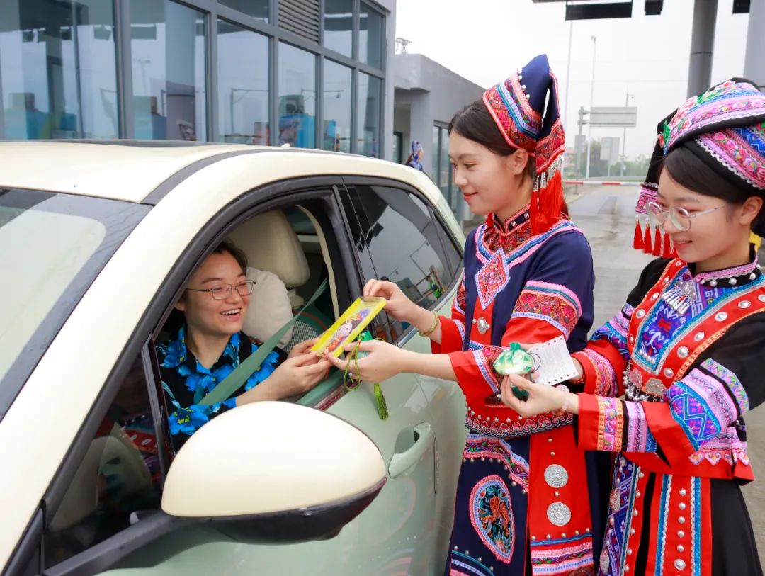 “跑了這么多地方,第一次在高速公路上體驗(yàn)到這么有特色的活動(dòng),還有民族特色的小禮品,這一趟行程真是收獲滿滿!”旅客李先生途經(jīng)賓陽南收費(fèi)站時(shí)感慨道。
