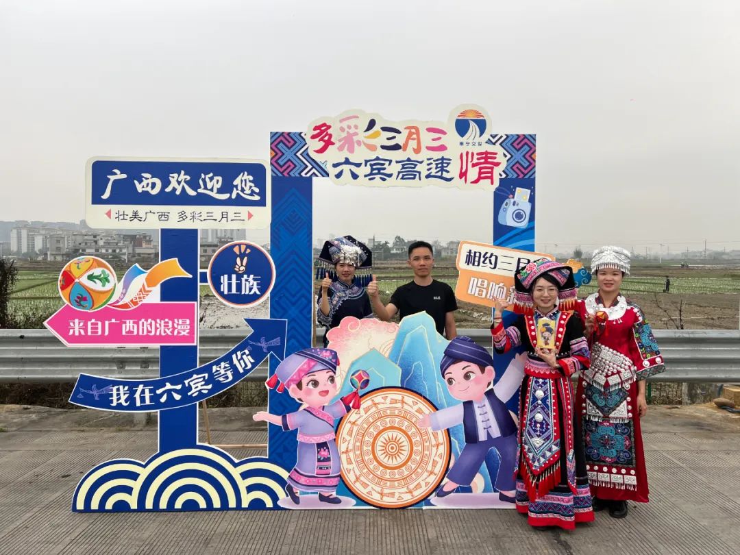 六賓收費(fèi)總站則通過在賓陽南收費(fèi)站設(shè)置“三月三”特色打卡點(diǎn),吸引過往司乘紛紛駐足拍照打卡、發(fā)視頻稱贊,活動(dòng)現(xiàn)場歡聲笑語不斷。