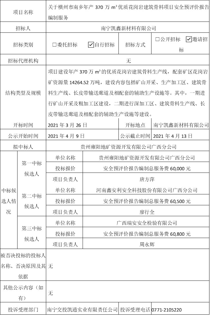 因公司發(fā)展需要,我集團(tuán)公司對金浦路24號城市花園白領(lǐng)公寓8套人才公寓及3個(gè)車位進(jìn)行出租底價(jià)評估,現(xiàn)將中標(biāo)結(jié)果公示如下:一、項(xiàng)目名稱:城市花園8套人才公寓及3個(gè)車位出租底價(jià)評估;二、開標(biāo)日期:2021年1月27日;三、中標(biāo)單位及中標(biāo)價(jià)格單位名稱:廣西誠信華正資產(chǎn)評估有限責(zé)任公司; 中標(biāo)價(jià)格(人民幣):肆仟陸佰伍拾元整(¥4650元);四、招標(biāo)人地址:南寧市青秀區(qū)站南東路2號;聯(lián)系人姓名和電話:孫艷0771-2805236;五、公示時(shí)...